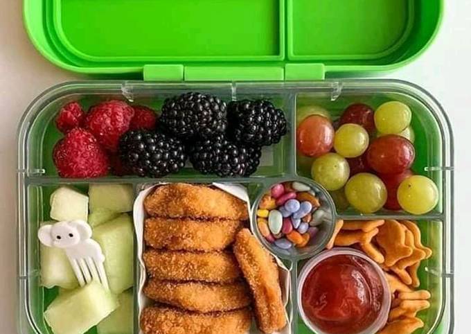 تعتمد أفكار لانش بوكس للحضانة على طريقة التقديم وتبعد كل البعد عن التقليدية المعتادة في إعداد لانش بوكس للمدرسة أو الجامعة، لأنها في الغالب تشمل عناصر غذائية سهلة التناول ومحببة للصغار وفيما يلي أمثلة منها: