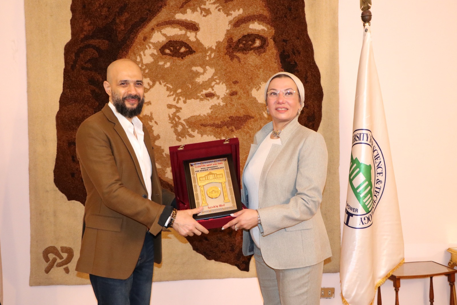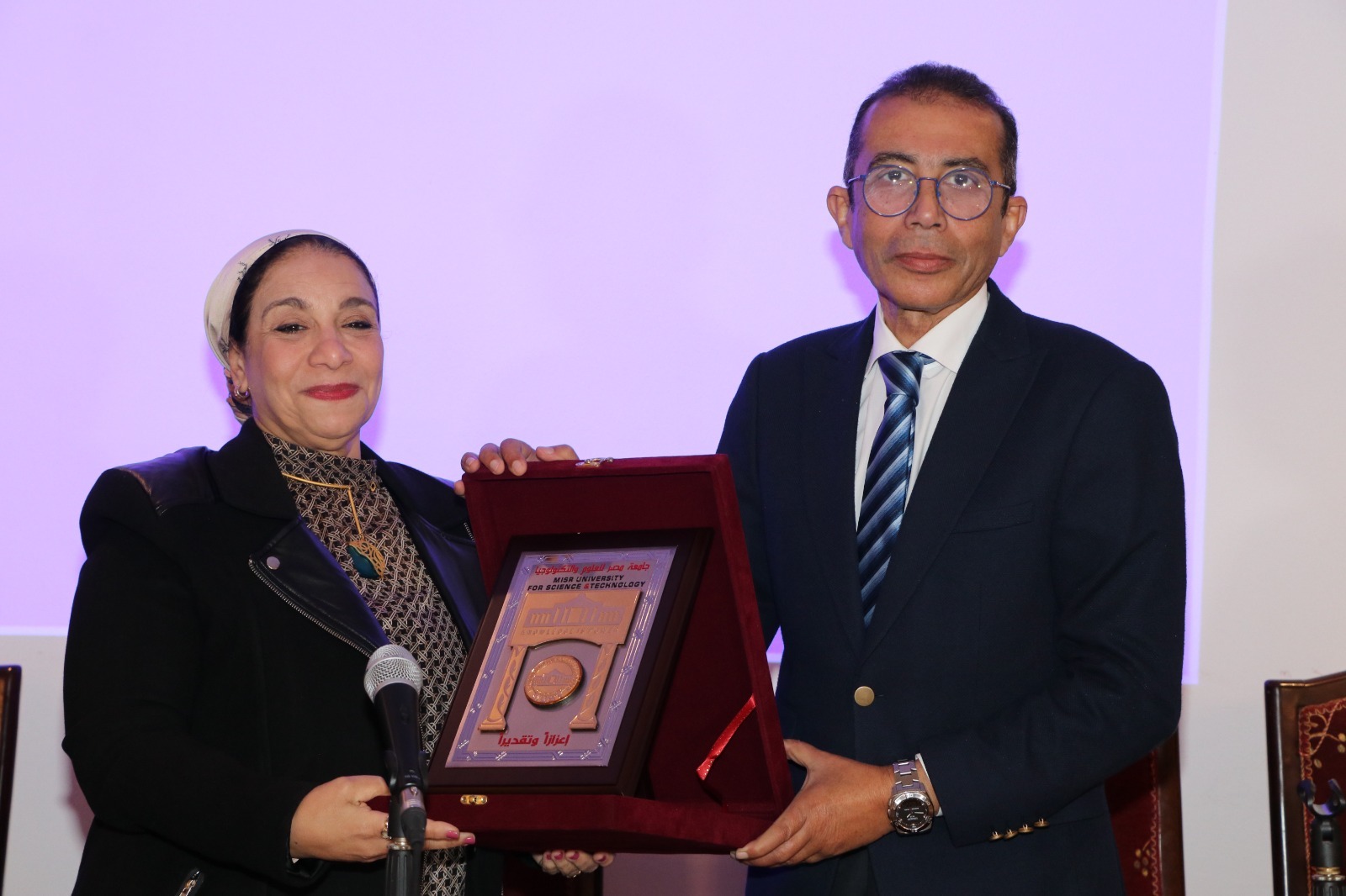جامعة مصر للعلوم والتكنولوجيا تحتفل باليوم العالمي للمرأة بمجال العلوم.. وتمنح وزيرة البيئة درعها