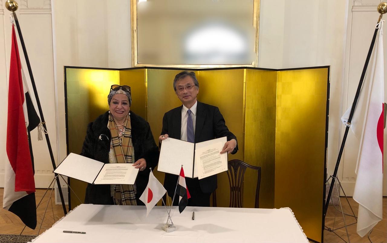 وقع أوكا هيروشي، سفير اليابان في مصر، والدكتورة زينب مكي، رئيسة مجلس إدارة جمعية فتيات المستقبل لتنمية المجتمع، عقد منحة لبرنامج المساعدات للمشروعات الأهلية الأساسية للأمن الإنساني (KUSANONE).