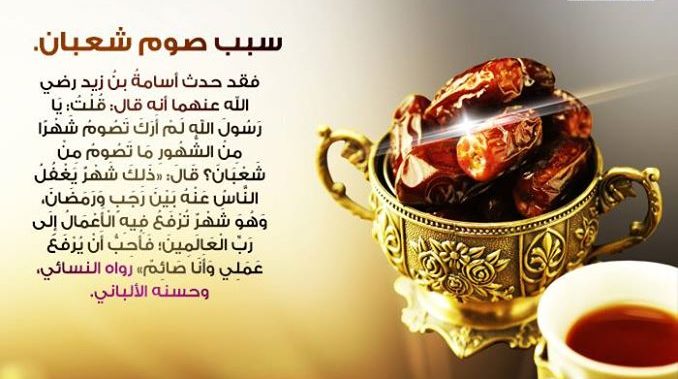 - اقترابه من شهر رمضان المبارك ومنح الفرصة للمسلم كى يتأهب للعبادة فيه ويدرب جسمه على الصوم تدريجيًا.