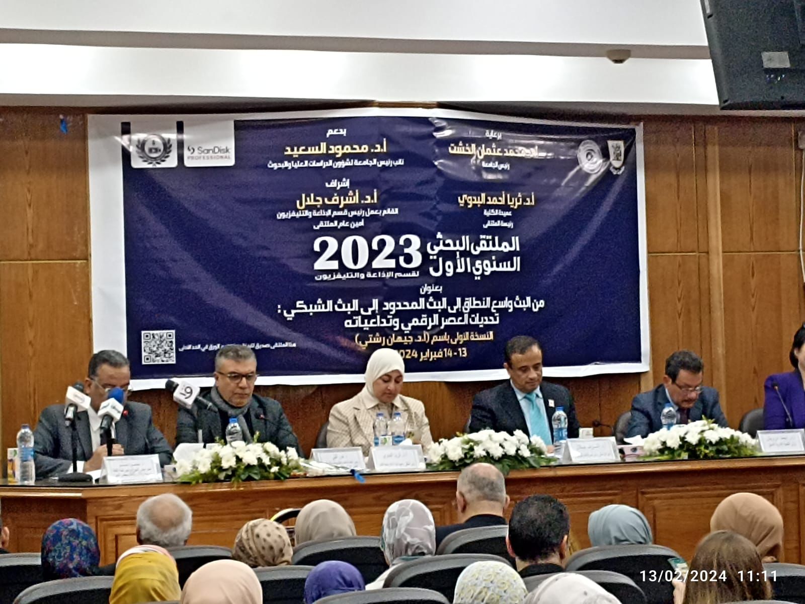 أقامت كلية الإعلام جامعة القاهرة الملتقى البحثي السنوي الأول لقسم الإذاعة والتليفزيون، برئاسة الدكتورة ثريا البدوي عميدة الكلية، ورئيس قسم الإذاعة والتلفزيون الدكتور أشرف جلال.