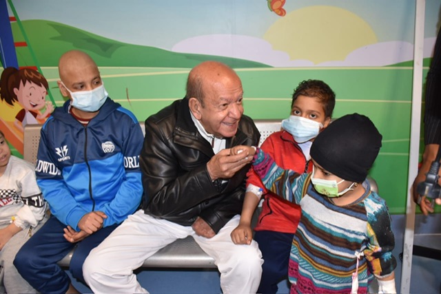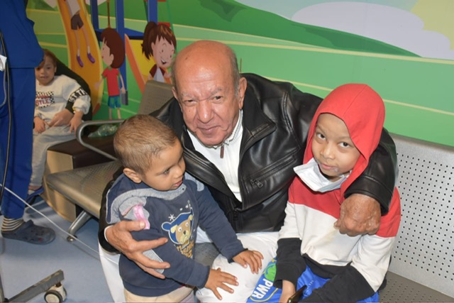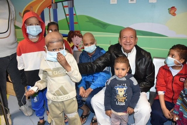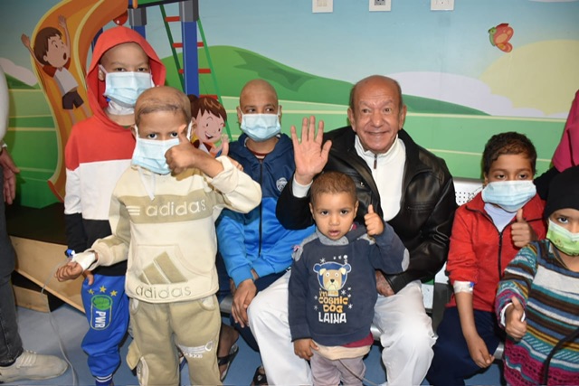 لطفي لبيب يحتفل مع الأطفال مرضى السرطان بعيد الحب في الأقصر | صور