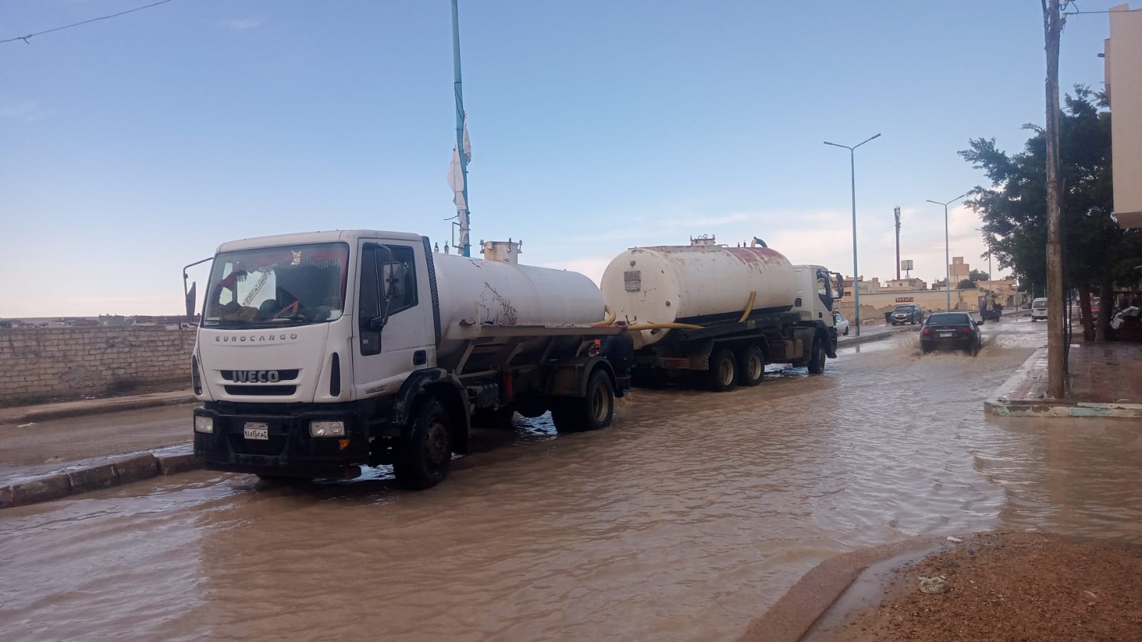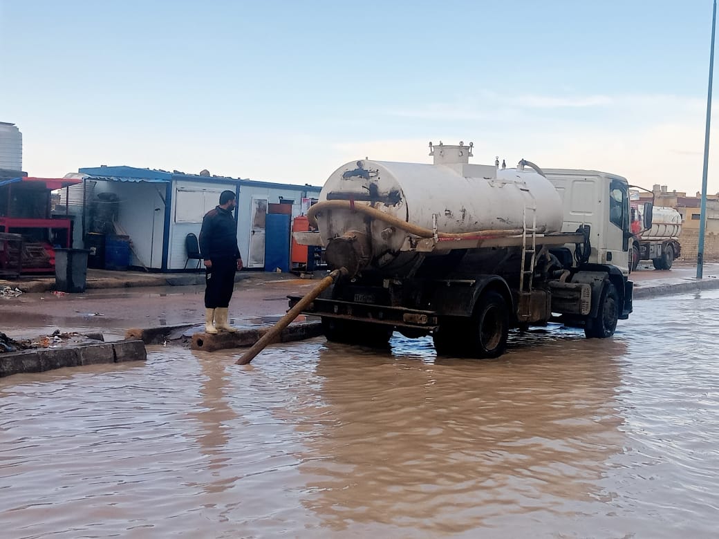 رفع تراكمات مياه الأمطار من خلال فرق الطوارئ