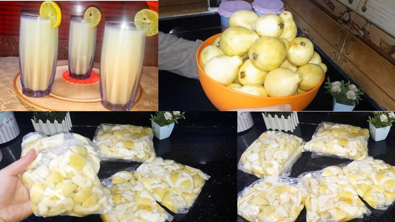 - اغسلي كميات من الجوافة ونظفيها ثم اقسميها لنصفين وتخلصي من البذور الداخلية وضعيها في أكياس حسب كمية العصير المطلوبة ثم أخرجيها عند الحاجة.
