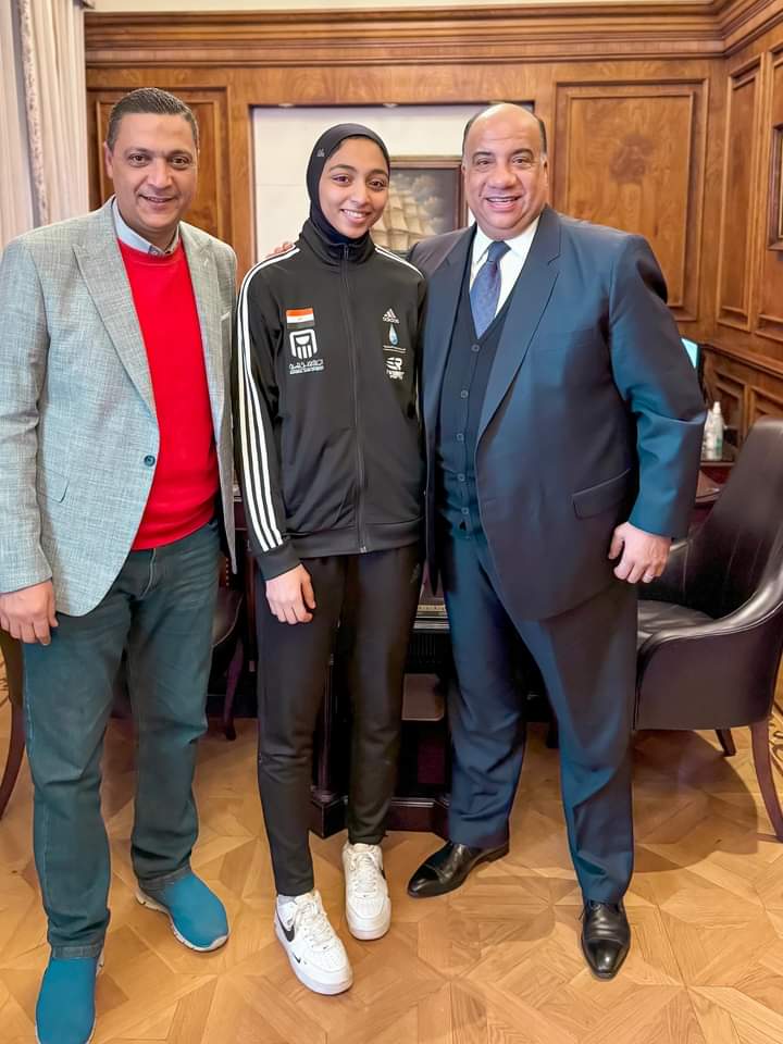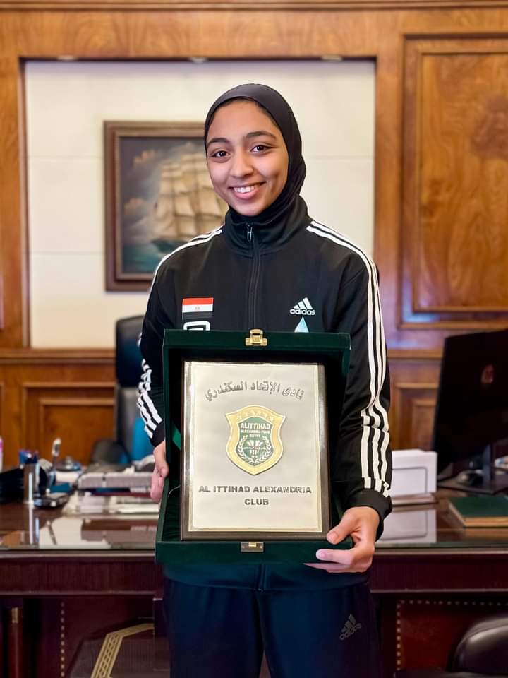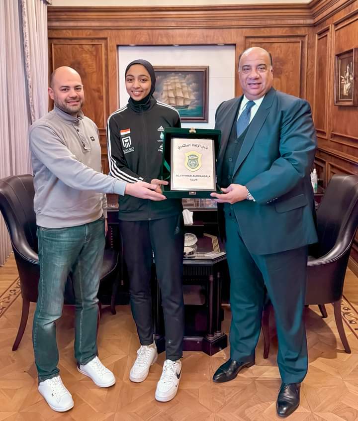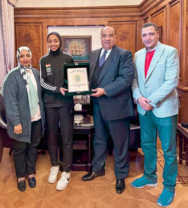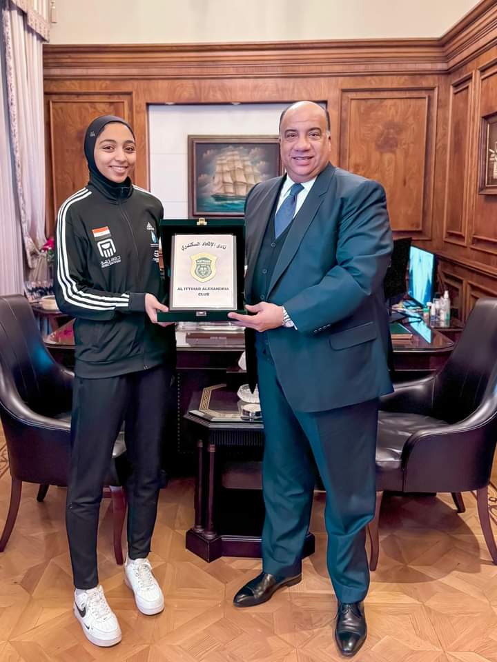 محمد مصيلحي يستقبل بطلة الاتحاد السكندري آية محمد عقب تأهلها لأولمبياد باريس