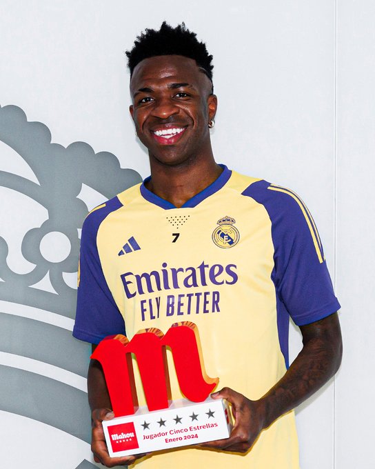 ونشر نادي ريال مدريد الإسباني عبر حساباته الرسمية على مواقع التواصل الاجتماعي صورة لـ فينسيوس جونيور بجائزة لاعب الشهر، وعلق عليها: ابدأ العام بشكل جيد.
