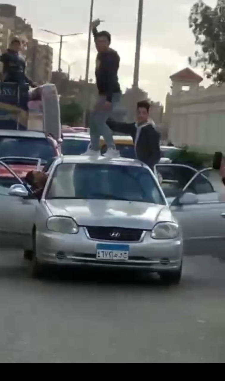 وحصل القاهرة على فيديو وصور من واقعة استعراض السيارات داخل العربات، وهم يحملون أسلحة بيضاء ويظهر مجموعة أخرى أعلى وهم يتراقصون أعلى السيارات وسط الأغاني الصاخبة، وغلق الطريق على باقي السيارات.