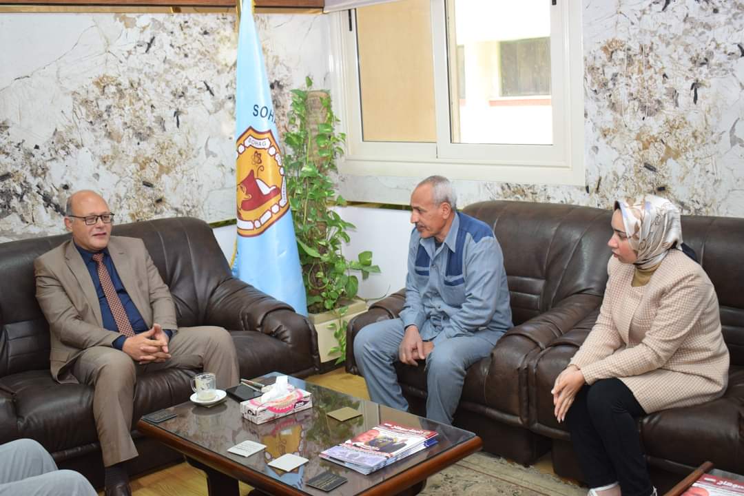 الحلم أصبح حقيقة.. رئيس جامعة سوهاج يكرم عم عمر الموظف بالجامعة ونجلته لتعيينها معيدة بقسم الإعلام |صور