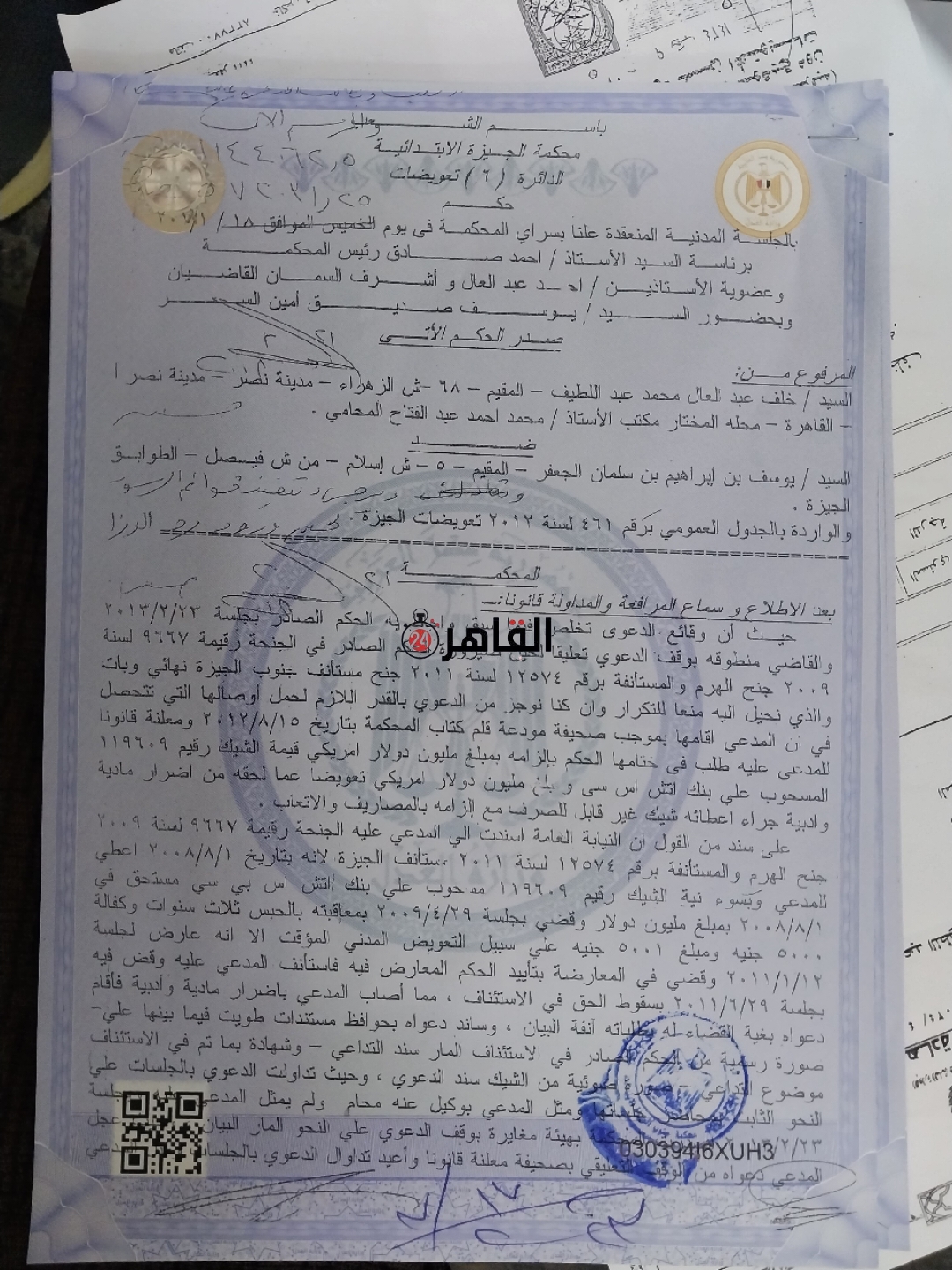 وأشار المتضرر في الواقعة، إلى أنه اتخذ الإجراءات القانونية اللازمة ضد المواطن السعودي وحصل على أحكام مدنية بموجب الحكم الجنائي من محكمة الجيزة الحكم الأول برقم 461 لسنة 2018 تعويضات الجيزة ألزمته المحكمة برد مليون دولار و5 ملايين جنيه تعويض على الشيك الصادر من حسابه الخاص في هذه القضية، والحكم الثاني رقم 1162 لسنة 2018 من محكمة الجيزة مدني كلي دائرة 6 اكتوبر الزمته المحكمة برد مليون دولار و5 مليون جنية تعويض على الشيك المظهر من المواطن السعودي المذكور.