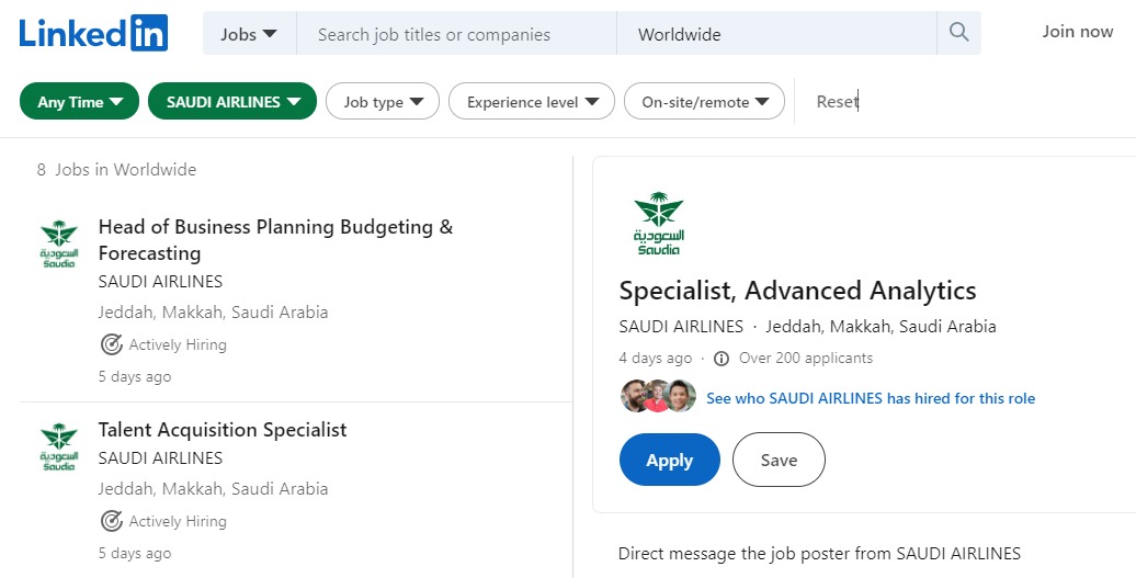 - قم بالدخول على الرابط التالي: https://www.linkedin.com/jobs/saudi-airlines-jobs-worldwide?f_C=16886&trk=top-card_top-card-primary-button-top-card-primary-cta