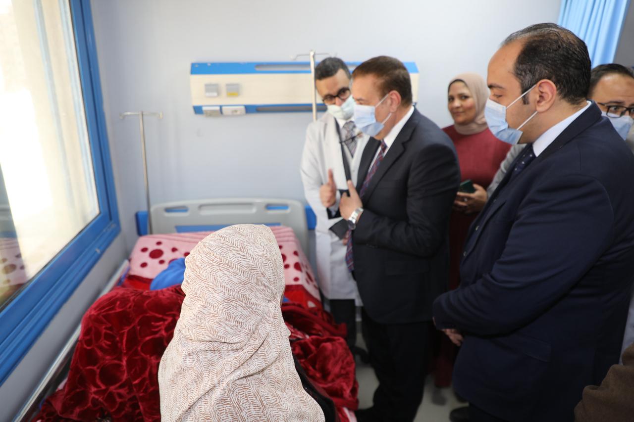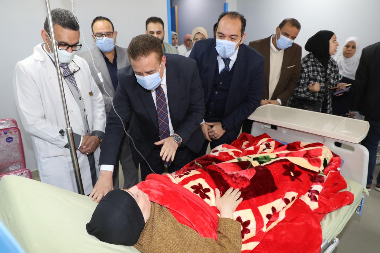 محافظ المنوفية يجري حوارا مع المرضى الفلسطينيين بمستشفى شبين الكوم التعليمي