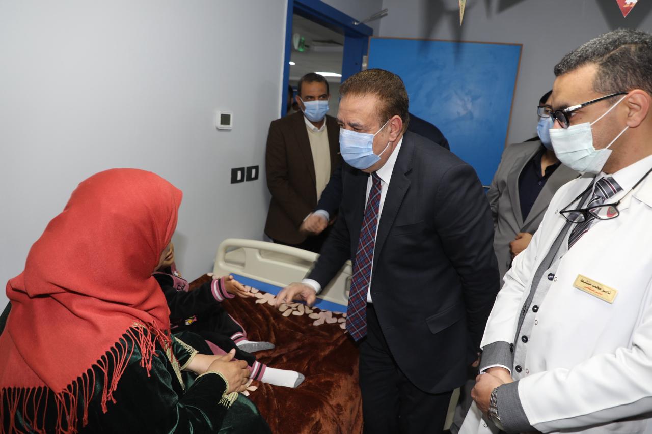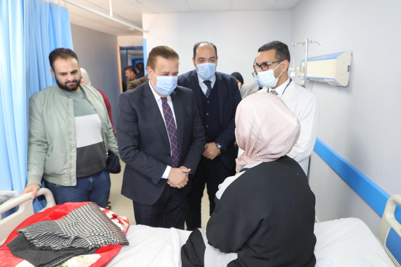 محافظ المنوفية يطمئن على المرضى الفلسطينيين.. ويوجه بالرعاية التامة وتوفير اتصال مع ذويهم في غزة
