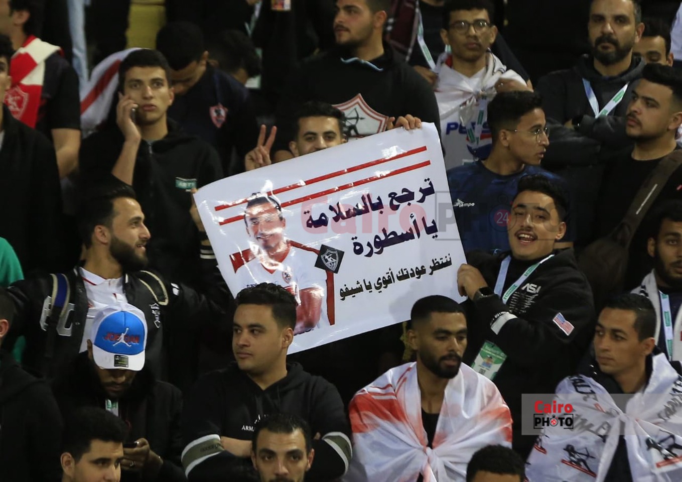كما حرصت الجماهير، على رفع لافتات دعم وتضامن لثنائي الأبيض لمساندتهما بعد الإصابة بقطع في الرباط الصليبي.