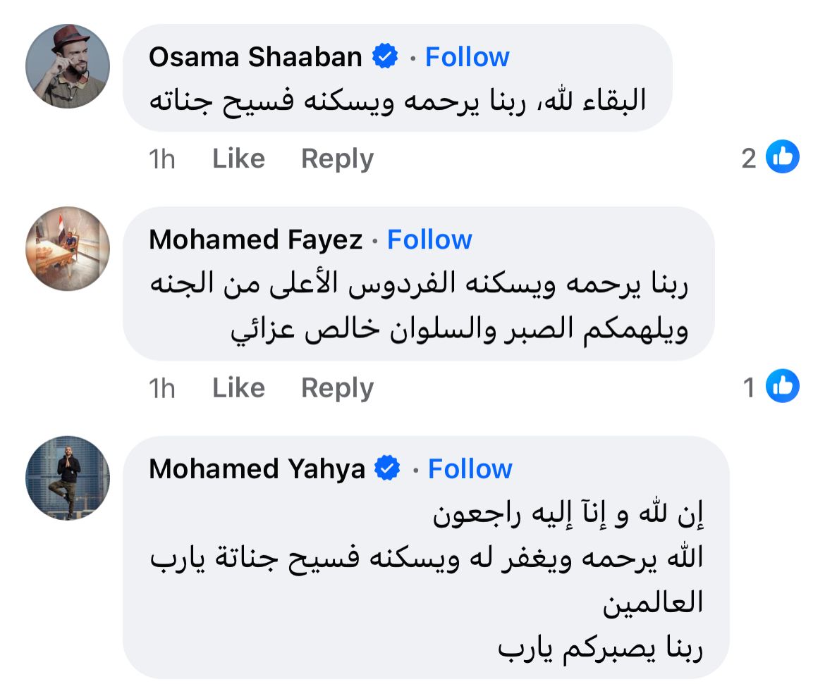 ونعى عدد كبير من المشاهير والفنانين، مثل الإعلامي الكبير محمود سعد ونهال عنبر، والإعلامي عمرو الليثي، وبلوجرز ومشاهير السوشيال ميديا.