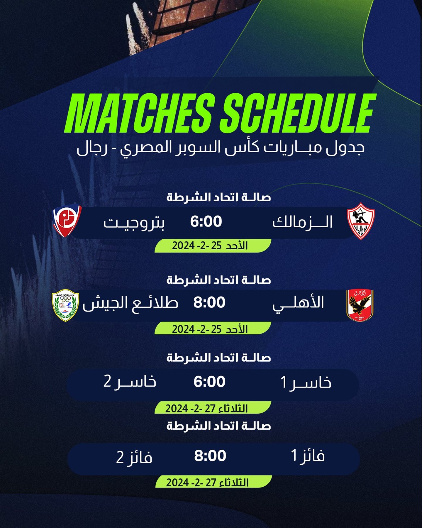 جدول مباريات كأس السوبر المصري للكرة الطائرة رجال
