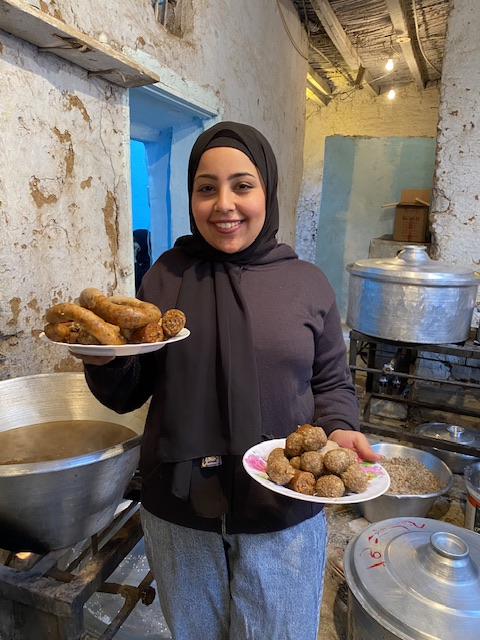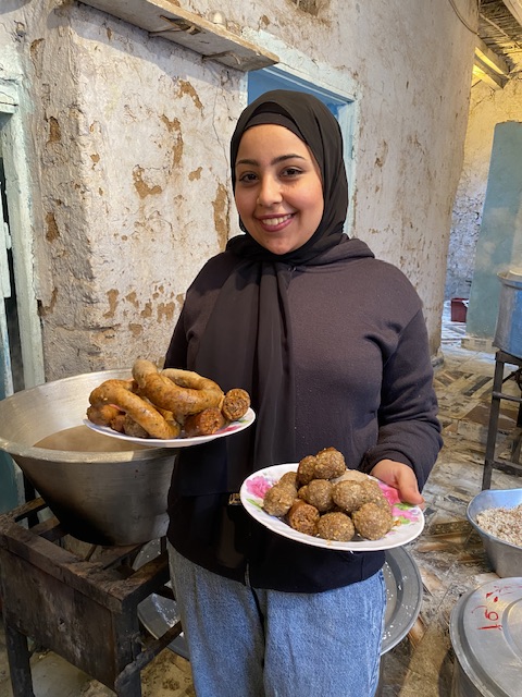 وقالت رحمة حسن لـ القاهرة 24: دي فرحة بنستناها من السنة للسنة بنعمل فيها كباب مولد أبو الحجاج الذي يعد أهم وأبرز الأكلات في تلك الليلة، وهو عبارة عن غلة معجونة مع اللحم وتشتهر الأقصر بعمله مرة واحدة في العام في تلك الليلة مع الكمونية وأصناف أخرى.