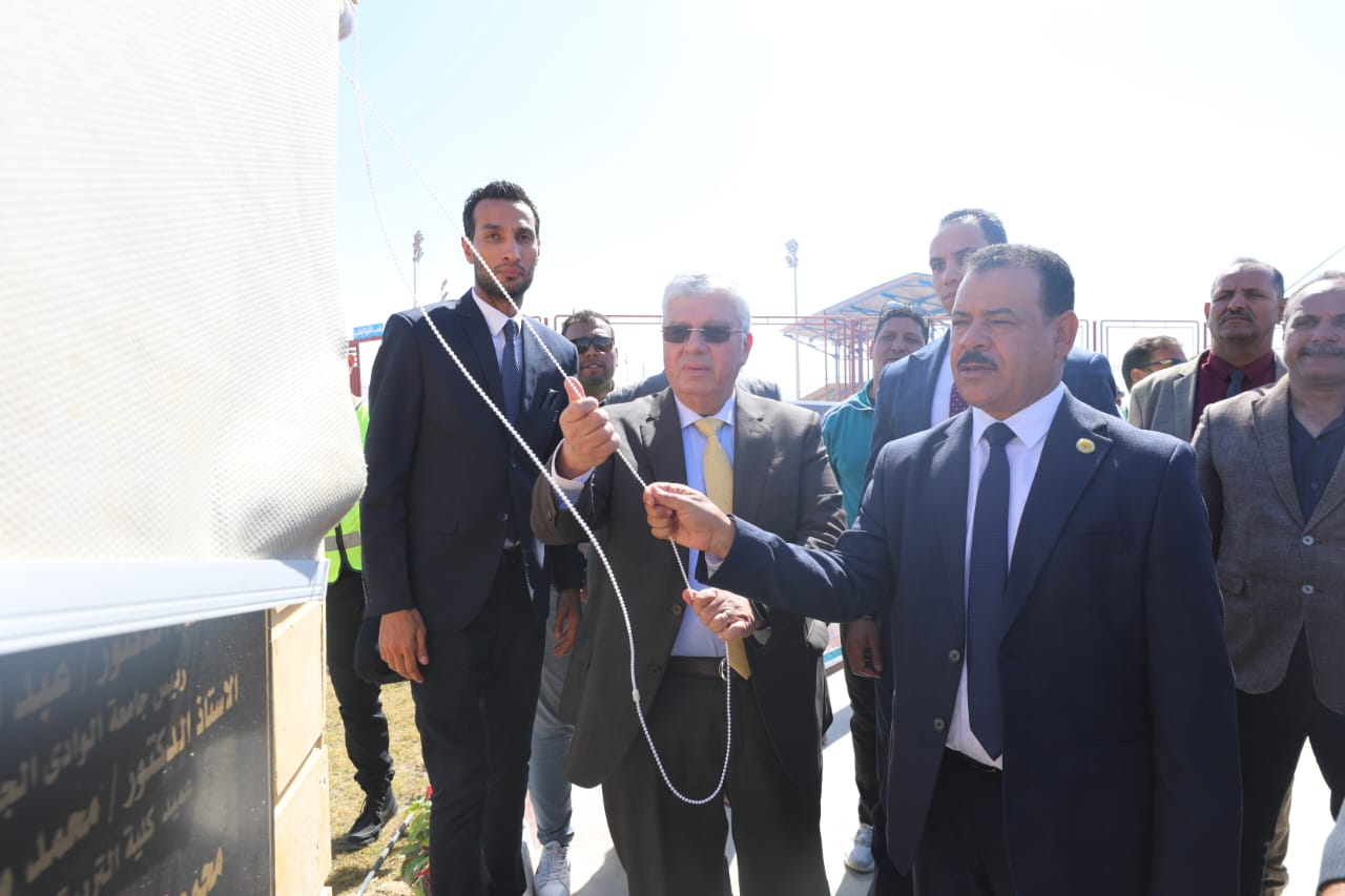 واستهل الوزير زيارته بافتتاح عدد من المنشآت الجديدة بجامعة الوادي الجديد، حيث تم افتتاح مبنى كلية التربية الرياضية الذي يُقام على مساحة 3000 متر مربع ويتكون من بدروم، ودور أرضي، ودورين متكررين، ويضم المبنى 6 مدرجات سعة 150 طالبًا، و10 قاعات تدريس، بالإضافة إلى الغرف الإدارية.