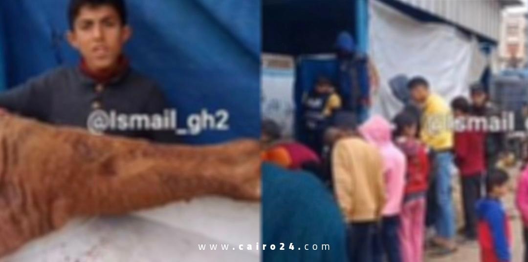 ومن خلال المقطع نفسه، قالت أم فلسطينية تحمل صغيرتها، ومنتظرة دورها في الصف لتحصل على نصيبها من لحم الحصان، وقالت: أطفالي مُشتاقين لطعم اللحمة وهنأكل لحمة الحصان.. ما معانا مصاري نجيب شيء غيرها، ومُضطرين يأكلوها.. لأن الوضع صعب جدًا.