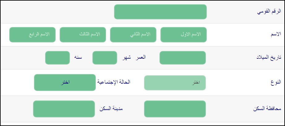 - املأ البيانات المطلوبة ومنها الرقم القومي والاسم والهاتف ورقم بطاقة الخدمات المتكاملة.