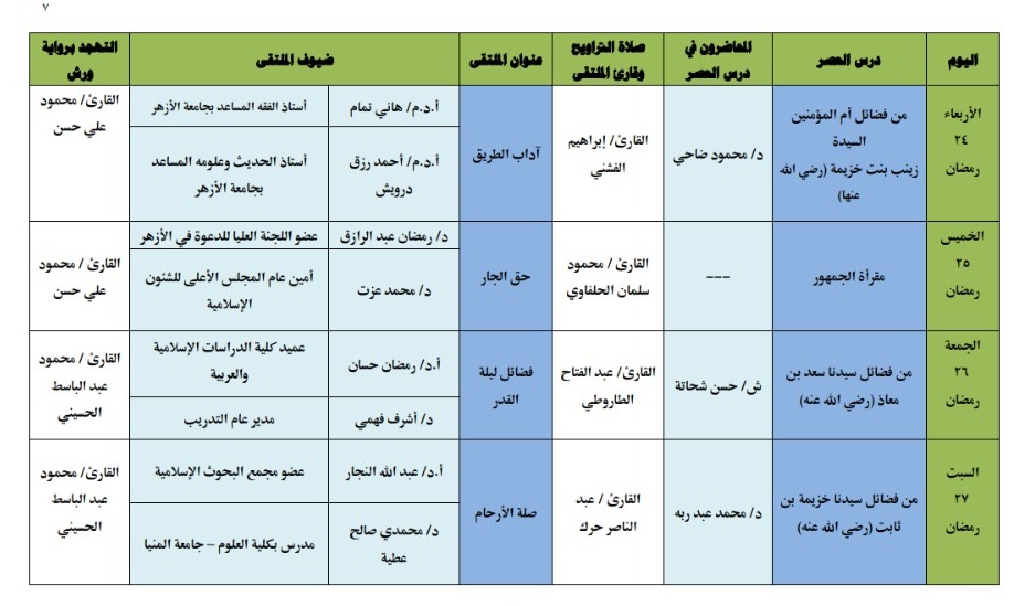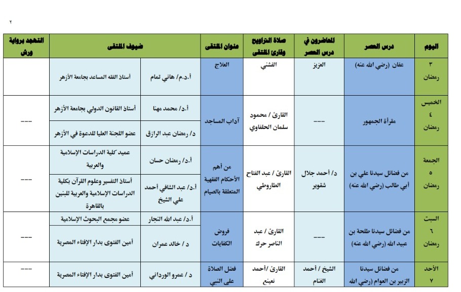 وحصل القاهرة 24 على المستند، الذي يوجد فيه أسماء العلماء والقراء الذين سيحيون أيام وليالي شهر رمضان بمسجد الإمام الحسين رضي الله عنه.
