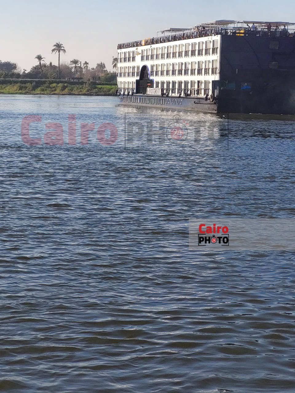 ننشر الصور الأولى لجنوح باخرة سياحية بنهر النيل تقل 34 سائحا أجنبيا بالمنيا | صور