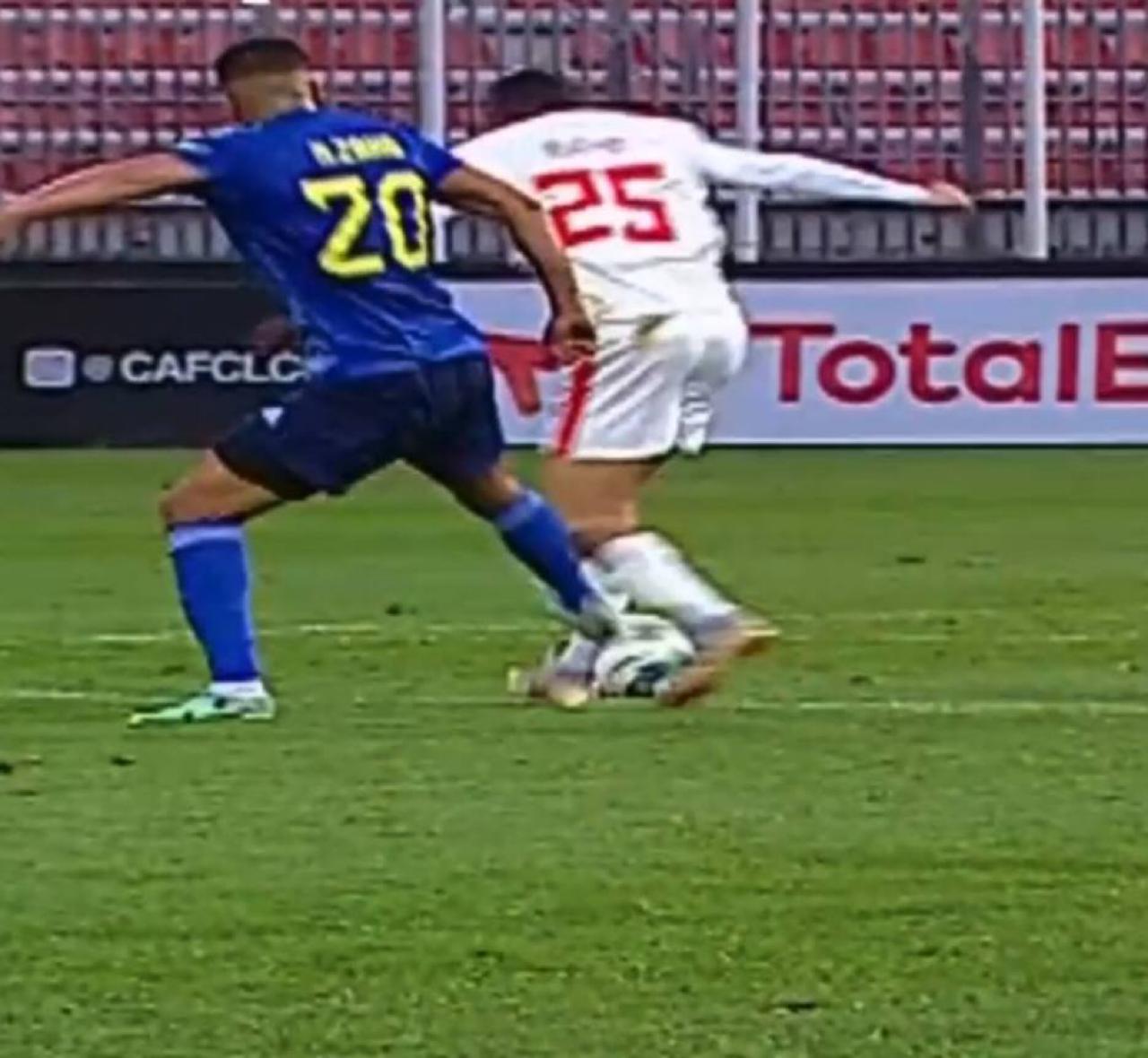 وفي الدقيقة الثانية من الوقت بدل الضائع تعرض أحمد سيد زيزو لـ إصابة قوية بعد تدخل عنيف من لاعب أبو سليم الليبي.