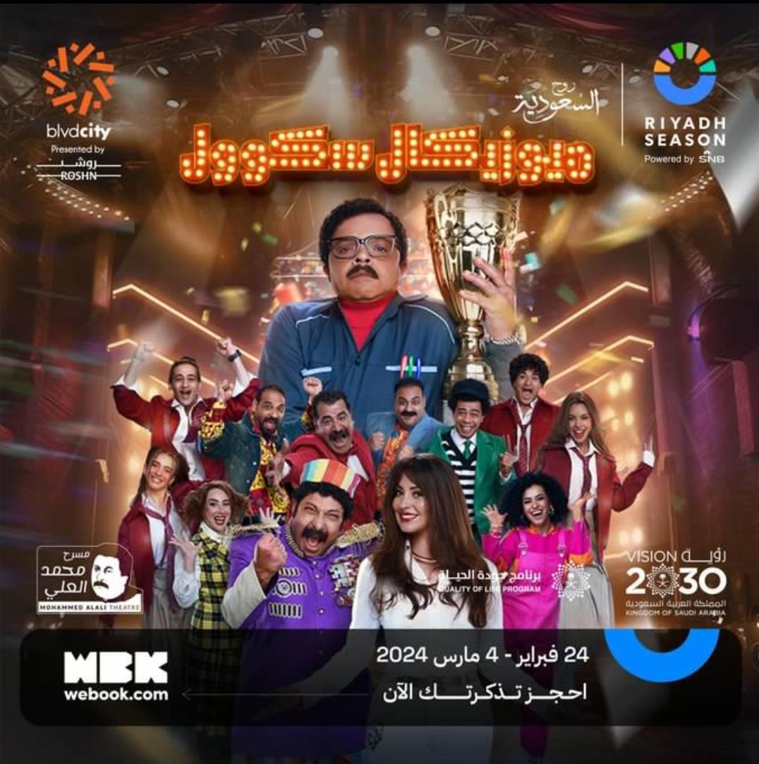 بدأ عرض مسرحية رمضان سكول ميوزيكال، للفنان محمد هنيدي، أمس بموسم الرياض، وتستمر حتى 4 مارس، وتعد أول أعمال هنيدي بعد حصوله على الجنسية السعودية.