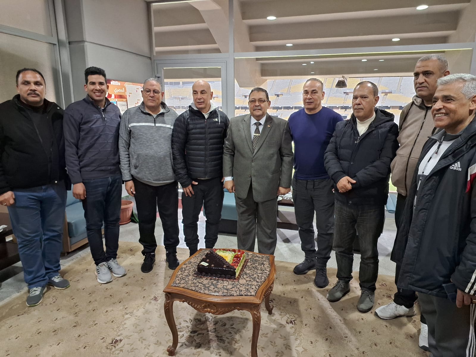 كما حرص مسئولو استاد برج العرب علي الاحتفال بالجهاز الفني للمنتخب بعد تولي تدريب منتخب مصر.