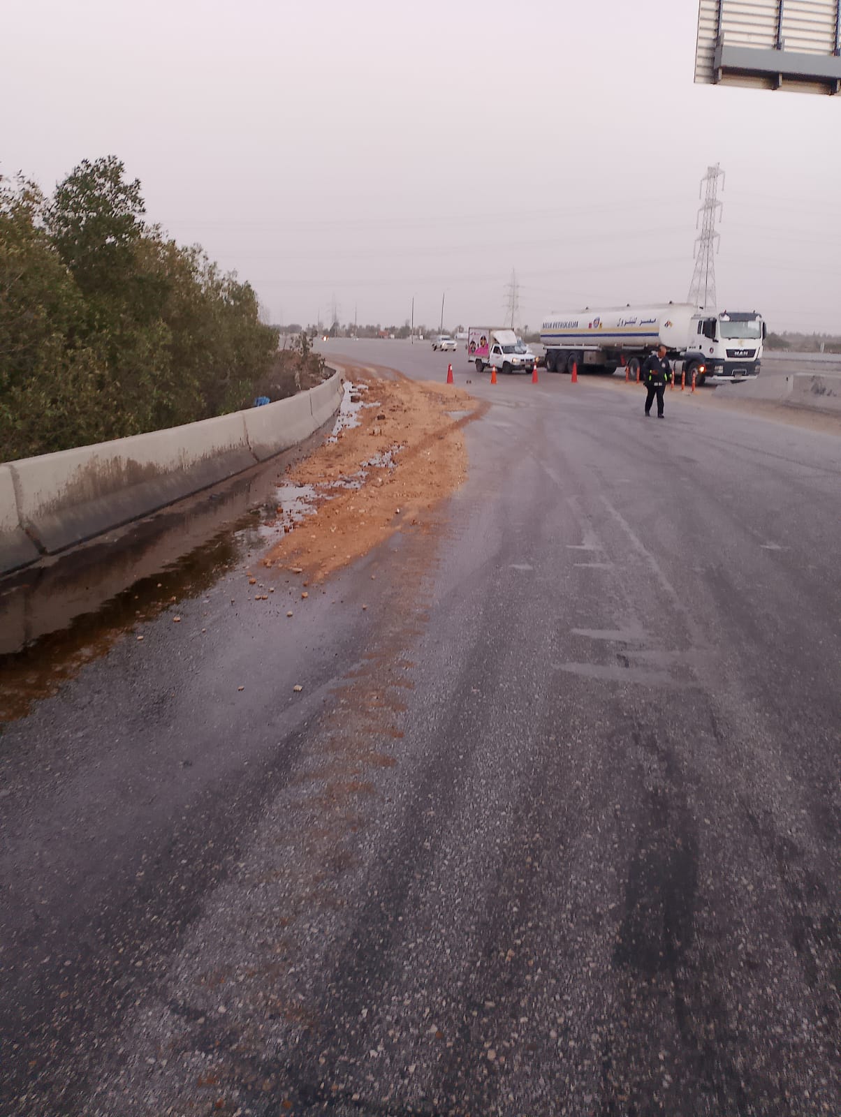 انقلاب مقطورة زيت بالطريق الإقليمي بالجيزة