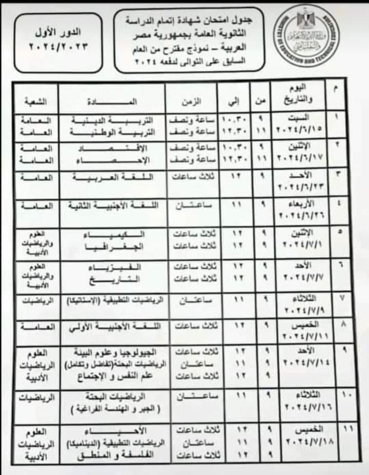 حقيقة جدول امتحانات الثانوية العامة 2024 المتداول