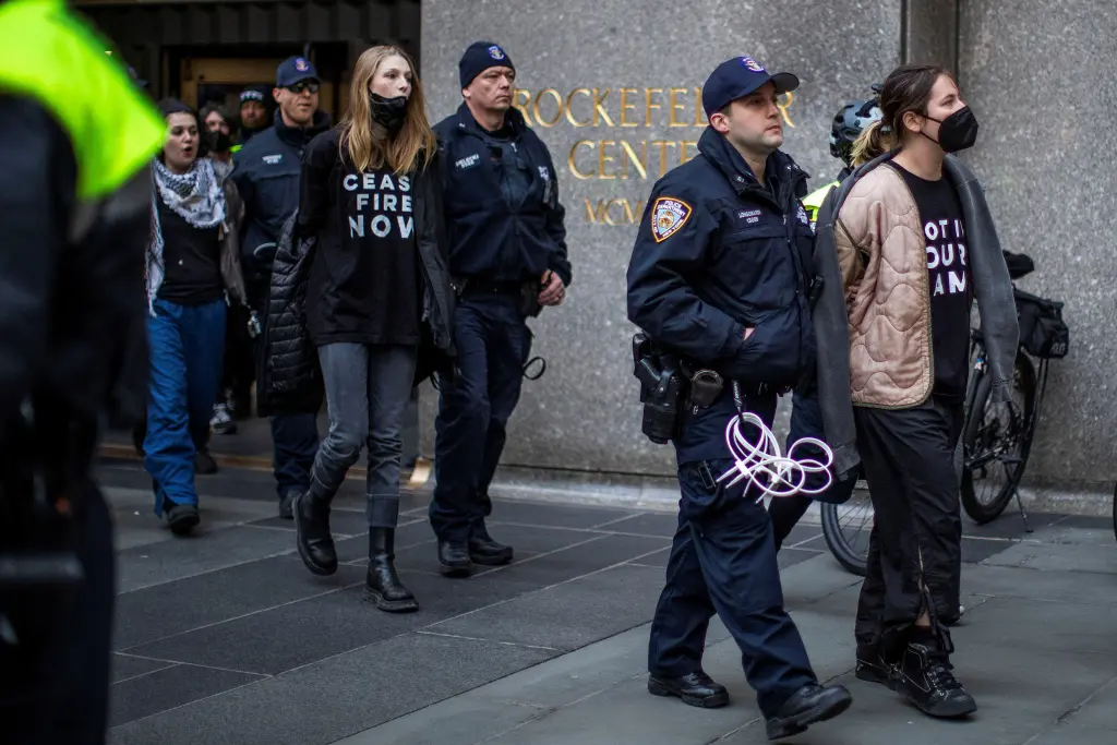 ووفقًا لـ رجال الشرطة، فإن نجمة فيلم Euphoria هانتر شيفر كان من بين 33 متظاهرًا تم احتجازهم لدى الشرطة لاقتحامهم مركز روكفلر 30 التابع لشبكة إن بى سى فى المدينة.