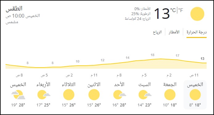 درجات الحرارة المتوقعة في السعودية