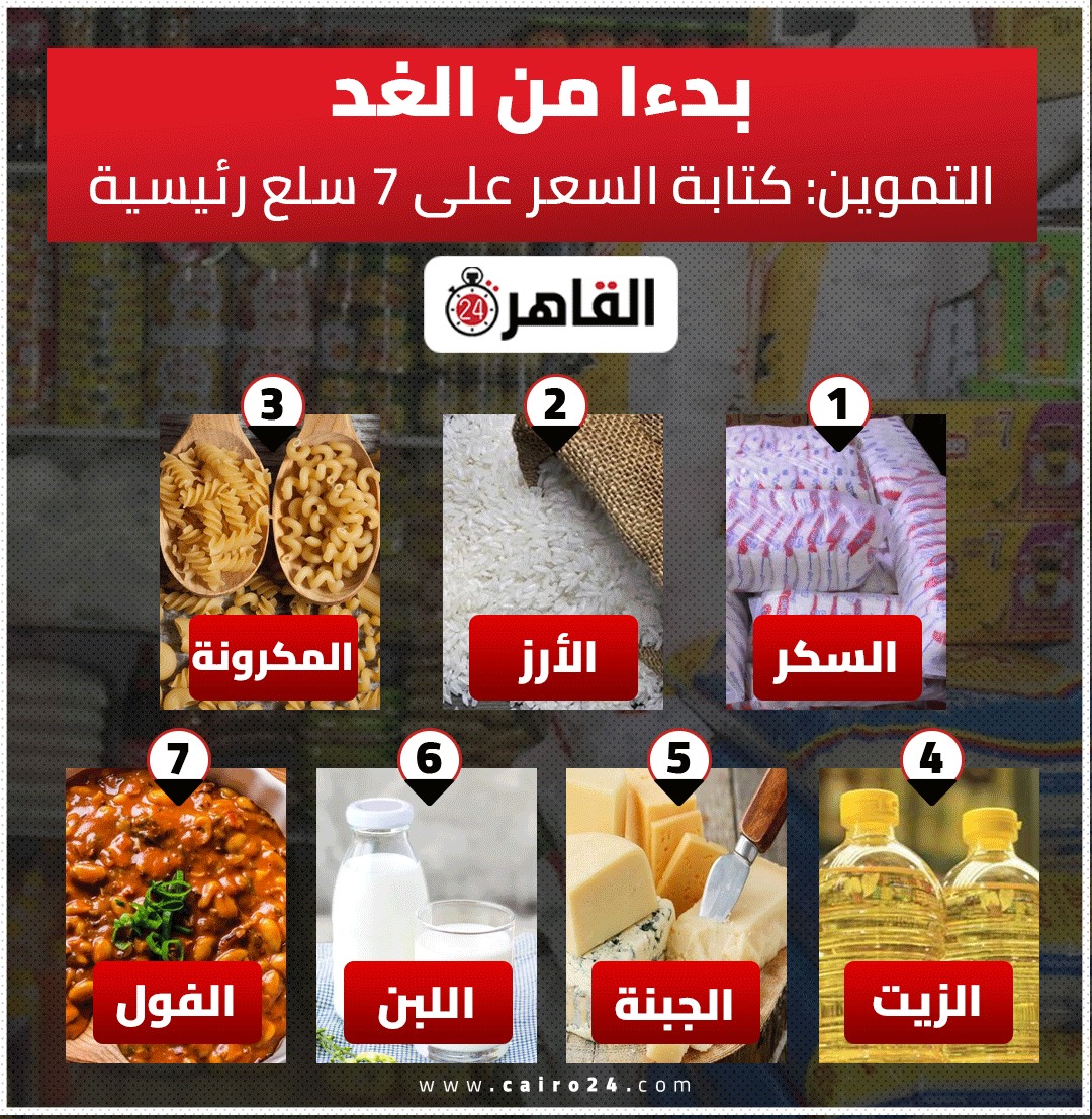 تبدأ الحكومة تطبيق قرار وضع حد أقصى لسعر 7 سلع رئيسية وهي السكر والزيت والأرز والمكرونة والجبنة واللبن والفول، بداية من غدٍ الجمعة.