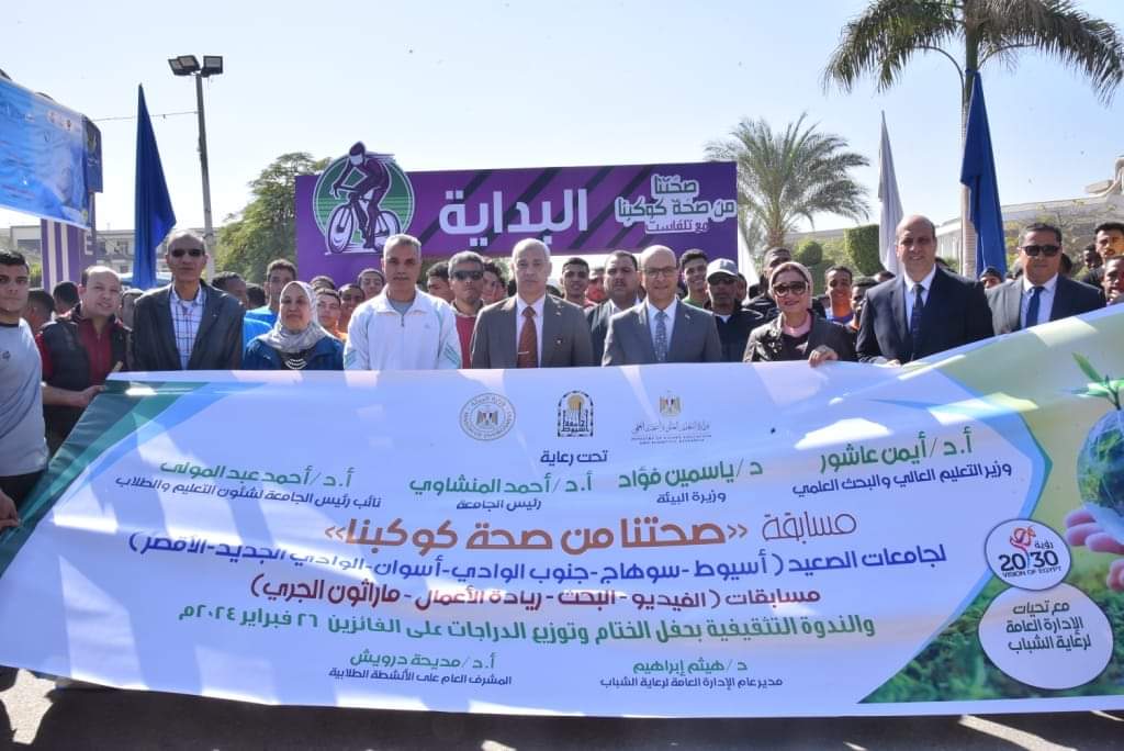 وانطلقت فعاليات المسابقة من جامعة أسيوط والتي تعد الجامعة المستضيفة، حيث تم تنفيذ مسابقة ماراثون رياضي تحت شعار صحتنا من صحة كوكبنا، بمشاركة عدد 6 جامعات من جنوب الصعيد وتشمل (أسوان والأقصر وسوهاج وجنوب الوادي، والوادي الجديد).