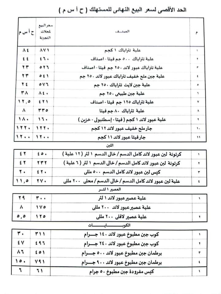 - وبلغ سعر كرتونة تتراباك عبور لاند وزن 250 جم فيتا نحو 526 جنيها.