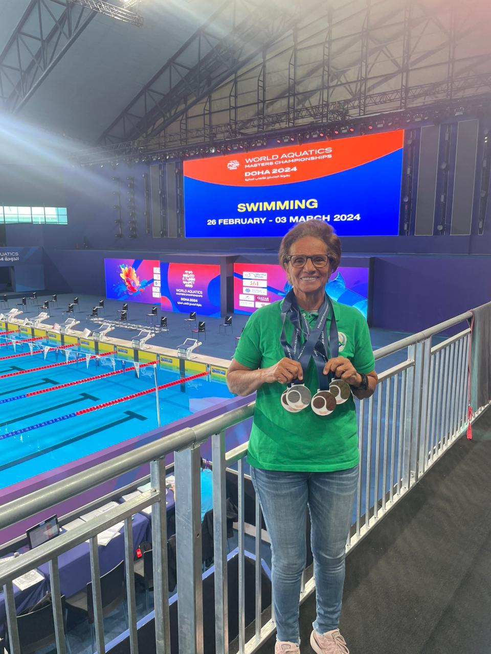 حققت السباحة المصرية سهير العطار، صاحبة الـ75 عامًا، والتي تُشارك في بطولات الماسترز “الكبار” للسباحة، إنجازًا كبيرًا بحصدها 5 ميداليات مختلفة في بطولة العالم للماسترز والمقامة حاليًا في دولة قطر.