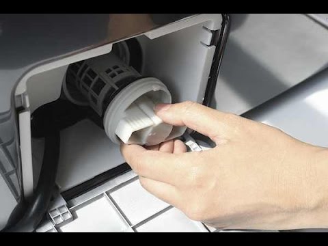- فك الغطاء وتنظيف فلتر مضخة الغسالة.