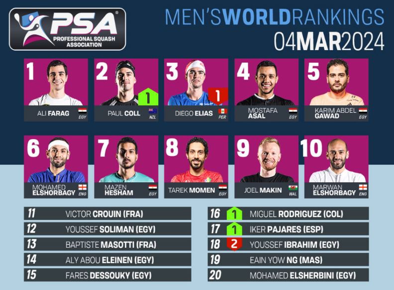 وتعد هذه المرة الأولى منذ ديسمبر 2022، التي يعود فيها النيوزيلندي بول كول إلى المركز الثاني عالميًا، بعدما تفوق اللاعب البالغ من العمر 31 عامًا على البيرو دييجو إلياس لينتقل إلى جوار المصنف الأول عالميًا علي فرج، بعد أداء قوي في بطولة ويندي سيتي المفتوحة 2024.
