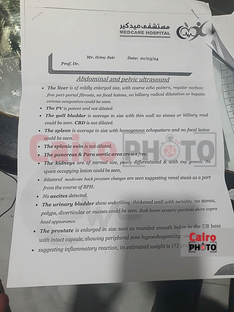 مفاجأة في التقرير الطبي لحلمي بكر: رفض العلاج وغير متعاون