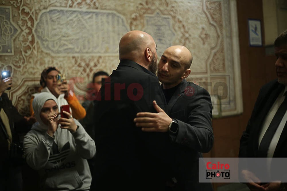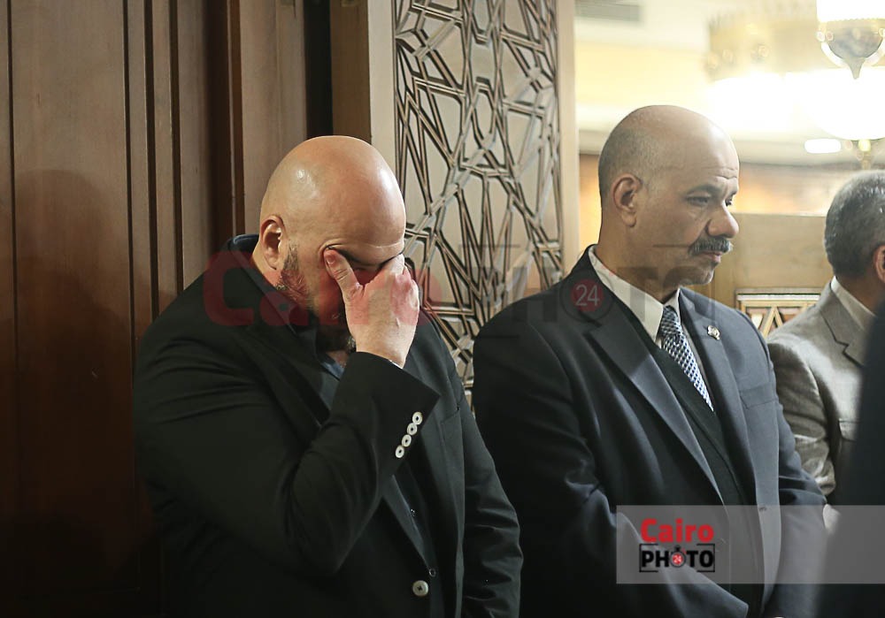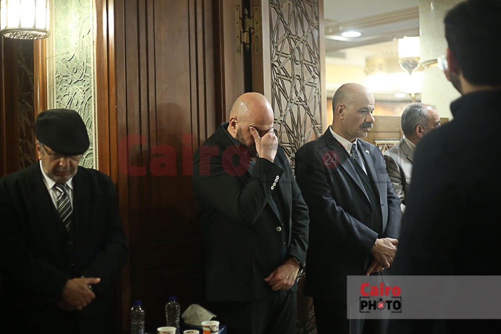 بكاء وتأثر مجدي الهواري في عزاء شقيقته بمسجد الرحمن الرحيم | صور