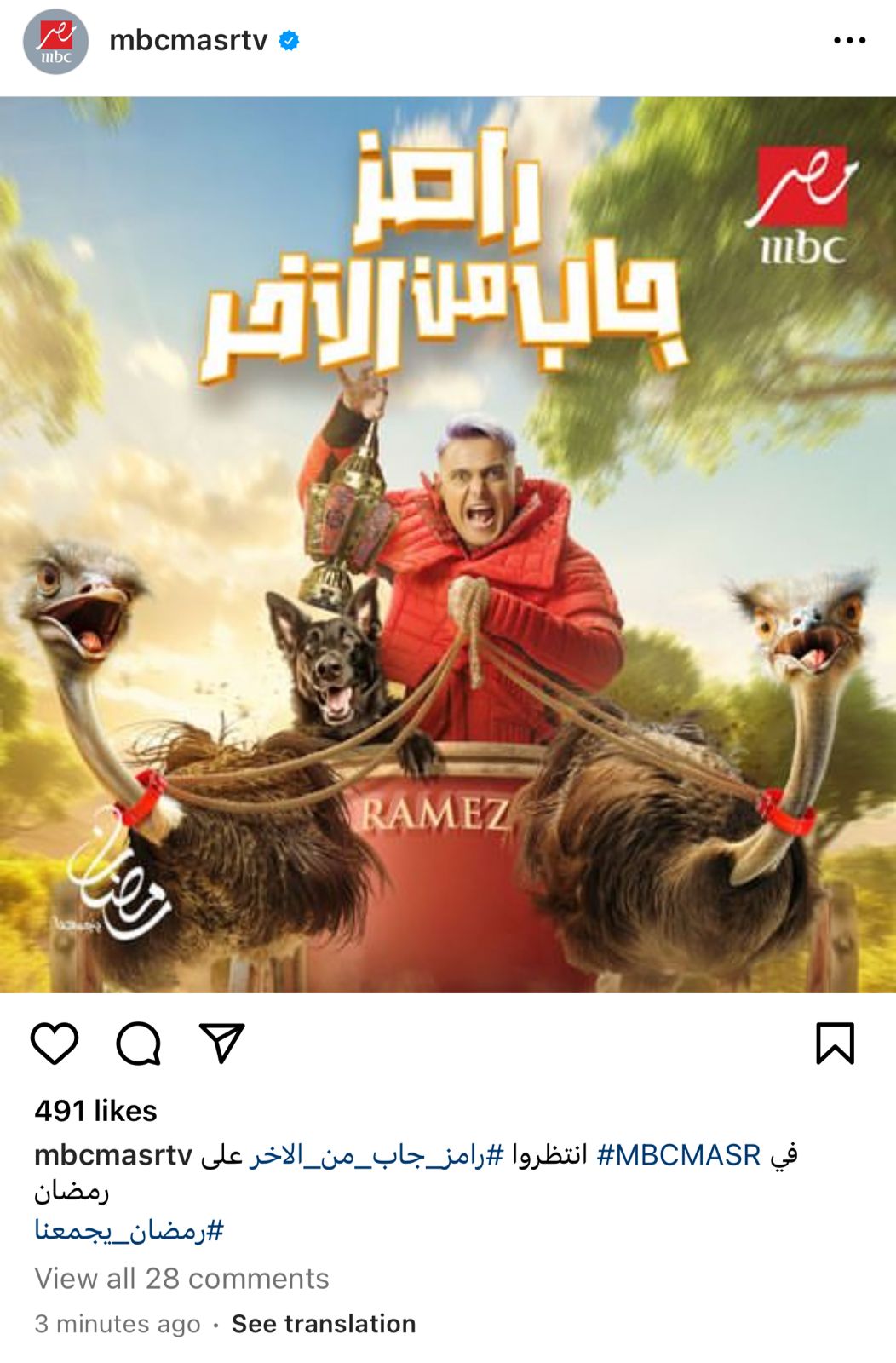 طرحت قناة mbc الفضائية البوستر الرسمي لرامز جلال، والذي يحمل اسم رامز جاب من الآخر، والمقرر عرضه ضمن السباق الرمضاني لعام 2024.