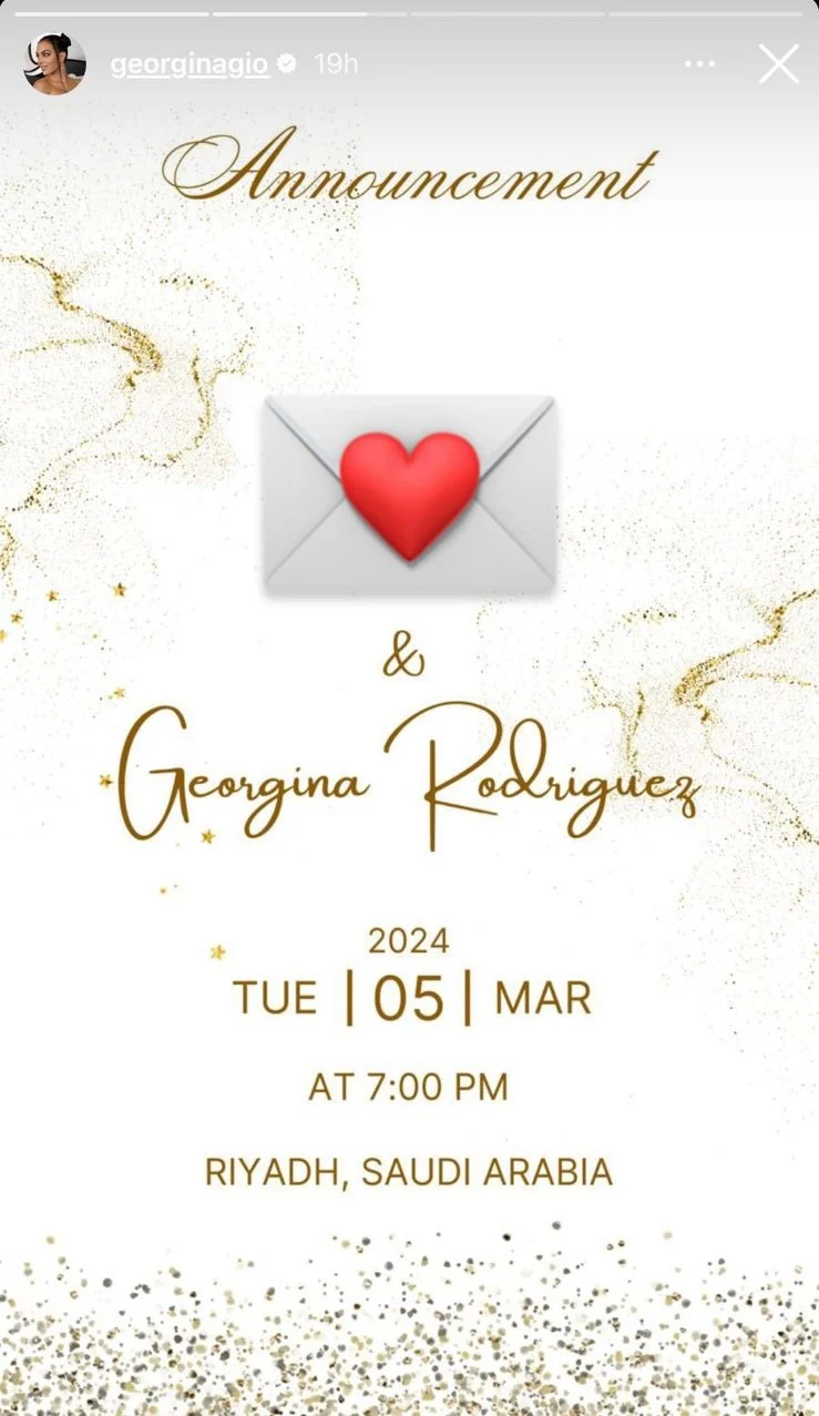 وأثارت تلك الدعوة المذكورة الشكوك حول زواجها من اللاعب كريستيانو رونالدو، بعد علاقة استمرت 8 سنوات، ونتج عنها إنجاب طفلتين.