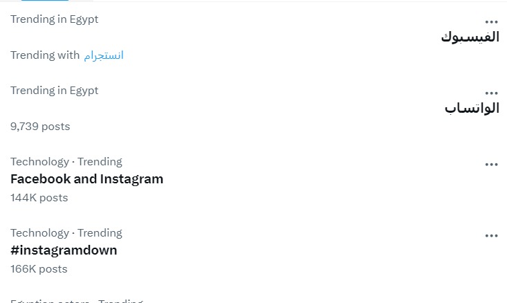 يتصدر فيسبوك وإنستجرام تريند موقع إكس تويتر سابقًا، وذلك بعد حدوث عطل مفاجئ استمر حوالي نصف ساعة، ليتجه مستخدمون إلى موقع إكس بدلا منهم.