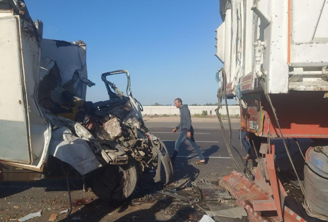لقي شخصان مصرعهما إثر حادث تصادم سيارة جامبو مع سيارة نقل ثقيل بالطريق الصحراوي اتجاه القاهرة نطاق مدينة النوبارية بمحافظة البحيرة.