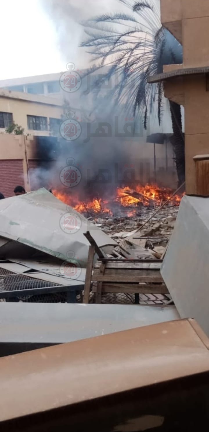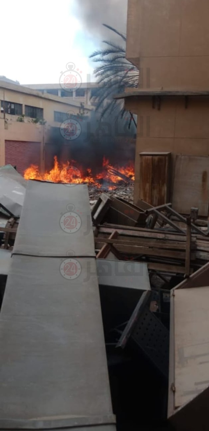 حريق بمحيط مدرج كلية الهندسة بالمطرية | صور