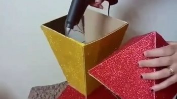- يتم قص المربعات بواسطة المقص بحيث يوضع المربع الكبير قاعدة لفانوس ويرص عليه المستطيل ويتم لصقها بشكل جيد وتركها إلى أن تجف