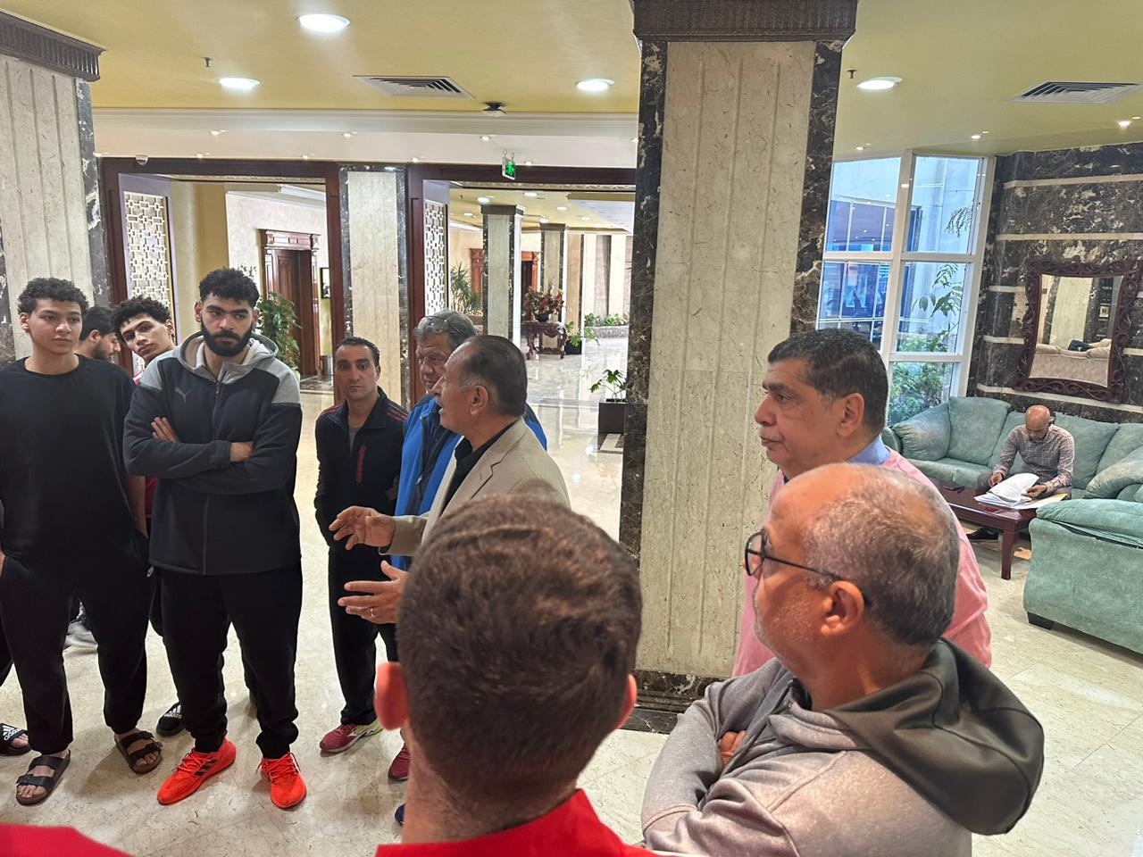 وزار معسكر المنتخب في المركز الأولمبي محمد الأمين رئيس اتحاد اليد وعمرو صلاح أمين صندوق الاتحاد، بحضور محمد الألفي المشرف على المنتخب، وحرصوا على تحفيز اللاعبين قبل السفر إلى غانا للمشاركة في دورة الألعاب الإفريقية، وأكد مسئولو الاتحاد ثقتهم في اللاعبين لحصد الميدالية الذهبية في منافسات كرة اليد.