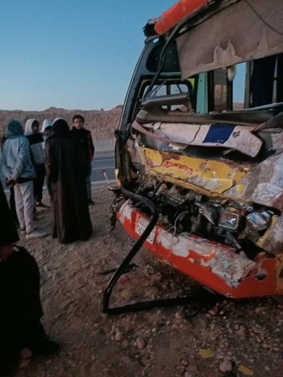 إصابة 4 أشخاص في حادث تصادم أتوبيس وسيارة نقل بطريق الزعفرانة البحر الأحمر