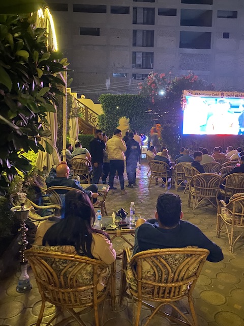 وشهدت كافيهات ومقاهي الأقصر توافد العديد من الشباب والأسر الأقصرية حتى أن أغلبها رفع شعار كامل العدد، فلا مكان لقدم وسط تزاحم حماسي من مشجعي الفريقين.