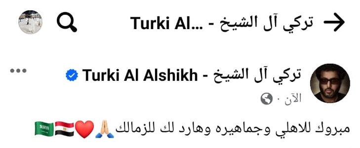 وكتب تركي آل الشيخ عبر حسابه على موقع التواصل فيسبوك قائلا: “مبروك للأهلي وجماهيره وهارد لك للزمالك”.